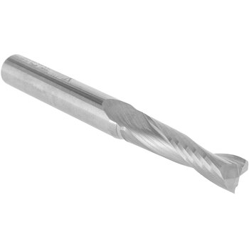 Nutfräser aus Vollhartmetall mit geschliffener Spirale zum besseren Spanauswurf. Durch die spiralförmig geschliffene Schneide arbeitet der Fräser mit ziehendem Schnitt und erzeugt eine saubere Fräskante. Ebenso kann mit weniger Druck auf das Werkzeug gearbeitet werden, was gleichzeitig die Bruchgefahr verringert. Ausführung mit zwei Schneiden.