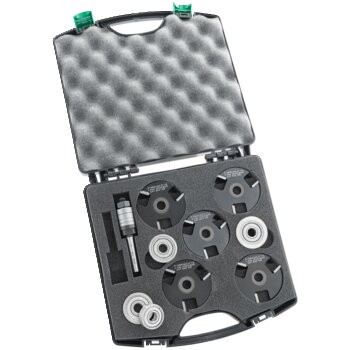 Ein Set, viele Möglichkeiten! Dieses Scheibennutfräser-Set bietet fünf Scheibennutmesser mit unterschiedlichen Nutzlängen für umfangreiche Nut- und Schlitzarbeiten mit der Oberfräse. Die Scheibennutmesser können wahlweise einzeln oder paarweise auf dem beiliegenden Aufnahmedorn montiert werden. Je nachdem welches Kugellager dabei zum Einsatz kommt lassen sich Nuten mit unterschiedlicher Tiefe fräsen. Gerade beim Fräsen von stirnseitigen Nuten mit unterschiedlichen Tiefen kann dieses Set seine Stärken voll ausspielen.