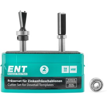 Fräserset für metrische Zinkenfrässchablonen, 2-tlg. und 3-tlg.