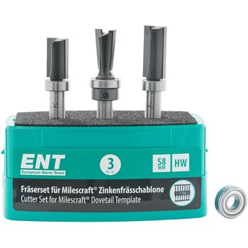 Fräserset für Milescraft® Zinkenfrässchablone, Zöllige Ausführung, mit Kugellager für Fingerzinken