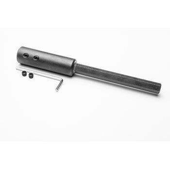 Verlängerungen mit brünierter Oberfläche für Bohrer mit Schaft 12,7 mm. Mit stirnseitiger Bohrung und 2 Gewindestiften zum Festschrauben des Bohrers.