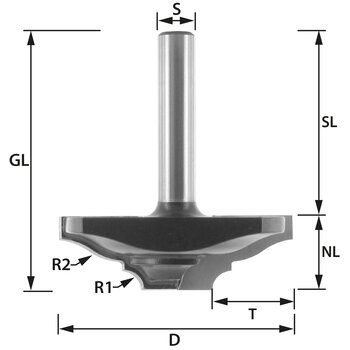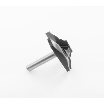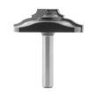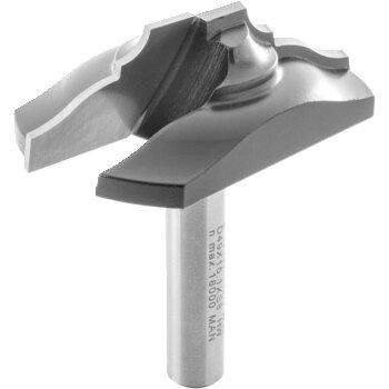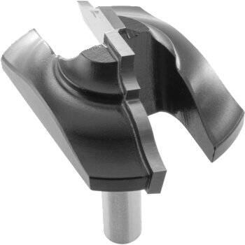 Dekorativer Abplattfräser ohne Kugellager zum Abplatten von Möbelfronten, Wandvertäfelungen und Holzdecken. Die zwei geschwungenen Radien verleihen dem Fräsbild Eleganz und sorgen für hochwertige und stilvolle Füllungen. Der Fräser ist nur für den stationären Einsatz geeignet und wird ohne Kugellager geliefert. Ein Parallelanschlag zur Führung des Werkstücks ist erforderlich.