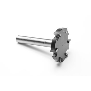 Trotz seiner extrem kompakten Abmessungen ist dieser Fräser ideal zum Planfräsen von großen Massivholzoberflächen und anderen Holzfaserplatten geeignet. Darüberhinaus eignet er sich zur Bearbeitung unebener Holzoberflächen und zum Fräsen größerer Überstände wie Umleimern und anderer Deckschichten wie Resopal. Die 45°- Fase an der Schneide erhöht die Laufzeit des Fräsers und senkt die Beanspruchung der Schneidekante. Seine sechs Schneiden sorgen jederzeit für optimalen Schnitt und einwandfreie Schnittergebnisse.