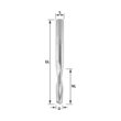 Nutfräser aus Vollhartmetall mit geschliffener Spirale zum besseren Spanauswurf. Durch die spiralförmig geschliffene Schneide arbeitet der Fräser mit ziehendem Schnitt und erzeugt eine saubere Fräskante. Ebenso kann mit weniger Druck auf das Werkzeug gearbeitet werden, was gleichzeitig die Bruchgefahr verringert. Ausführung mit zwei Schneiden.